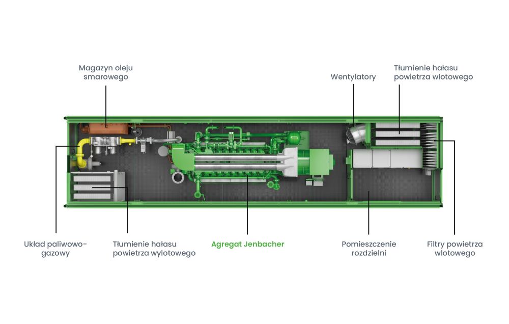 - Wysokosprawny agregat kogeneracyjny Jenbacher typu 6
