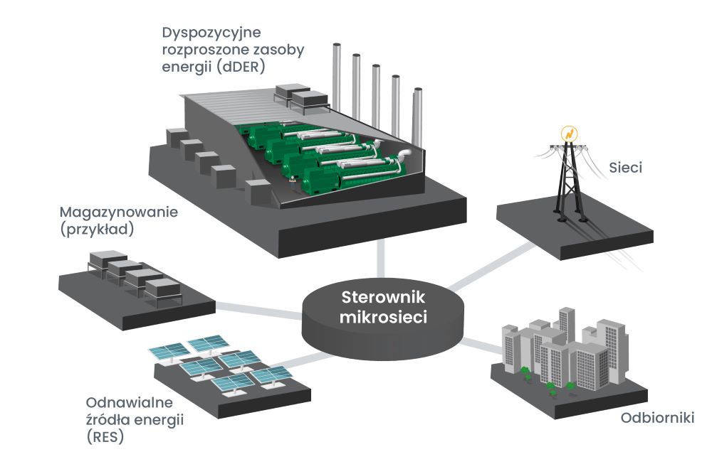 Mikrosieci to niewielkie systemy wytwarzania i dystrybucji energii pracujące pod różnymi obciążeniami, w tym cieplnymi, oraz korzystające z rozproszonych zasobów energetycznych (DER), np. silniki rozproszone, odnawialne źródła energii i instalacje do jej magazynowania.
